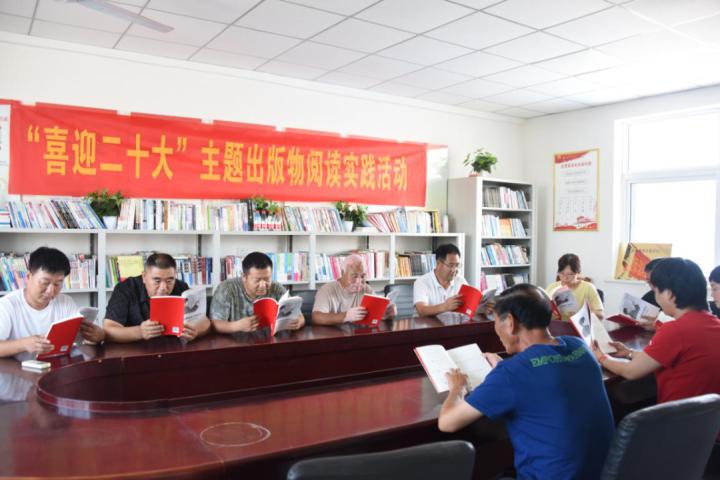 文安县赵各庄镇尹村农家书屋组织开展“喜迎二十大”主题出版物阅读实践活动。曹雨欣 摄