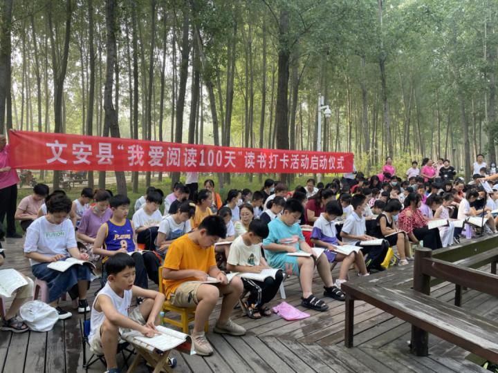文安县“我爱阅读100天”读书打卡活动启动仪式。田韵鸽 摄